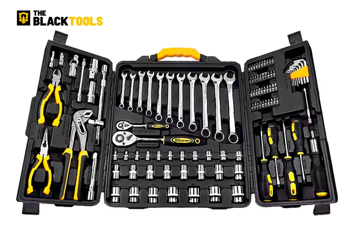 O Kit de Ferramentas 110 Peças TTK110 The Black Tools é a escolha completa para quem busca versatilidade, resistência e desempenho em qualquer tipo de reparo. Projetado para acompanhar profissionais e entusiastas, ele reúne as ferramentas essenciais para trabalhos automotivos, marcenaria, bricolagem e manutenção doméstica com máxima eficiência.